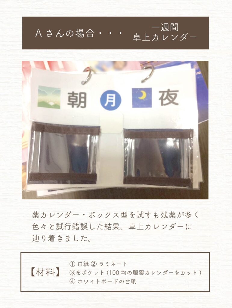 その方の生活に合った方法で内服管理を行っています。
